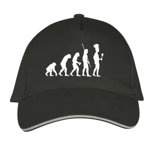 Bestelle hier dein Evolution Koch Cap aus 100 % schwere gebürstete Baumwolle und gestallte es individuell nach deinen Vorstellungen. Kombiniere dein Evolution Koch Cap mit dem dazu passenden T-Shirt sowie Capi für ein rundum stimmiges Outfit.