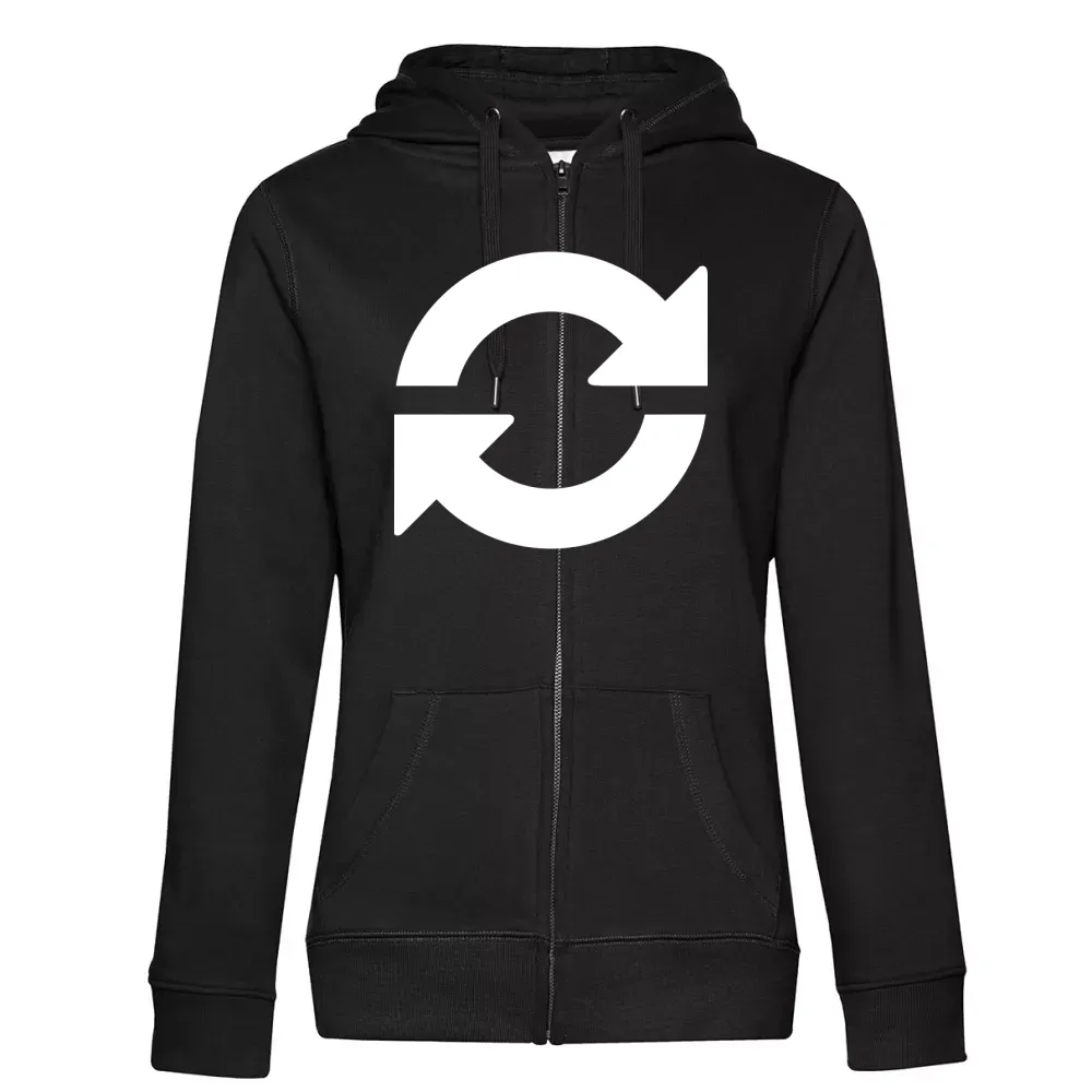 Setzen Sie mit dem Aktualisieren-Symbol auf Ihrem Kapuzenjacke Frauen Hoodie ein klares Zeichen für Erneuerung und Inspiration. Bringen Sie Ihre Persönlichkeit und Ihren Stil zum Ausdruck und inspirieren Sie andere, ebenfalls mutig neue Wege zu beschreiten. Ideal als Geschenk oder um sich selbst eine Freude zu machen.