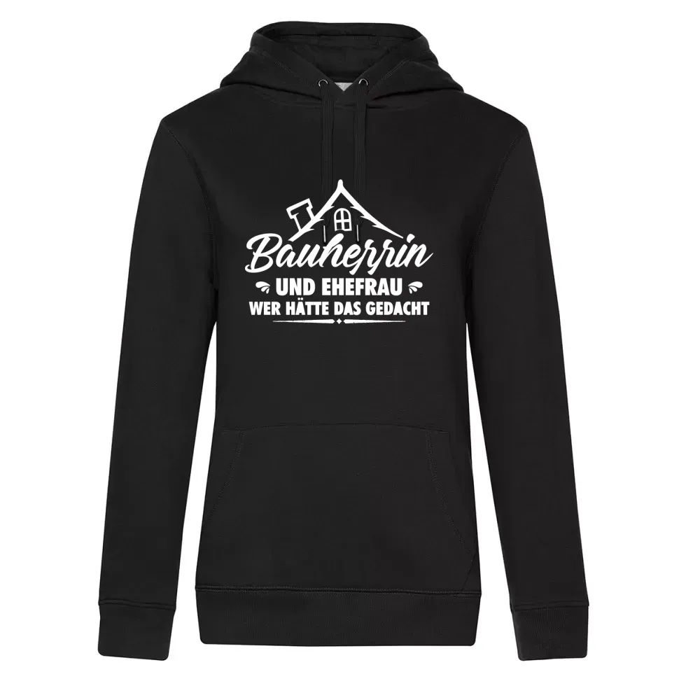 Bestelle hier dein Bauherrin und Ehefrau Wer Hätte Das Gedacht Geschenk Hoodie aus 80 % einlaufvorbehandelte, ringgesponnene, Baumwolle, gekämmt - 20 % Recyceltes Polyester und gestallte es individuell nach deinen Vorstellungen. Kombiniere dein Bauherrin und Ehefrau Wer Hätte Das Gedacht Geschenk Hoodie mit dem dazu passenden T-Shirt sowie Capi für ein rundum stimmiges Outfit.