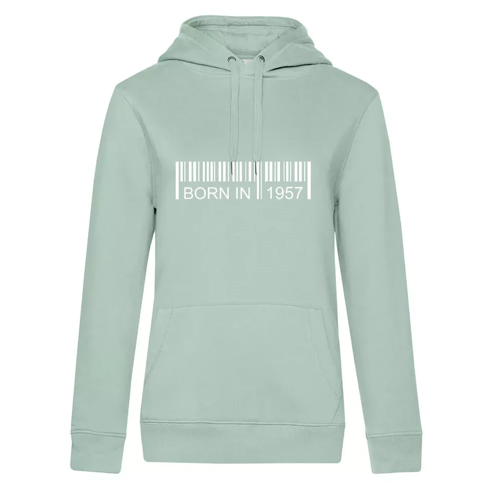 Wählen Sie das Frauen Hoodie und genießen Sie die Kombination aus Stil und Persönlichkeit – mit dem Born in 1957-Motiv setzen Sie ein Zeichen, das nicht nur Ihre Liebe zum Jahr 1957 zeigt, sondern auch Ihr Gespür für angesagte Mode.
