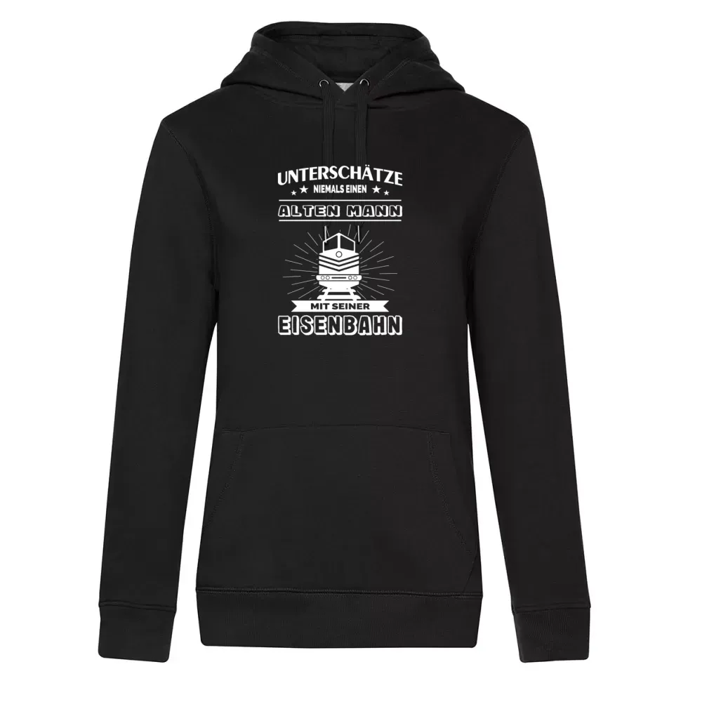 Verleihen Sie Ihrer Garderobe eine persönliche Note und zeigen Sie stolz, dass man auch im Alter nicht stillsteht. Holen Sie sich jetzt Ihr individuelles Frauen Hoodie mit diesem motivierenden Eisenbahnmotiv und machen Sie es zu einem Teil Ihrer Freizeitgarderobe!