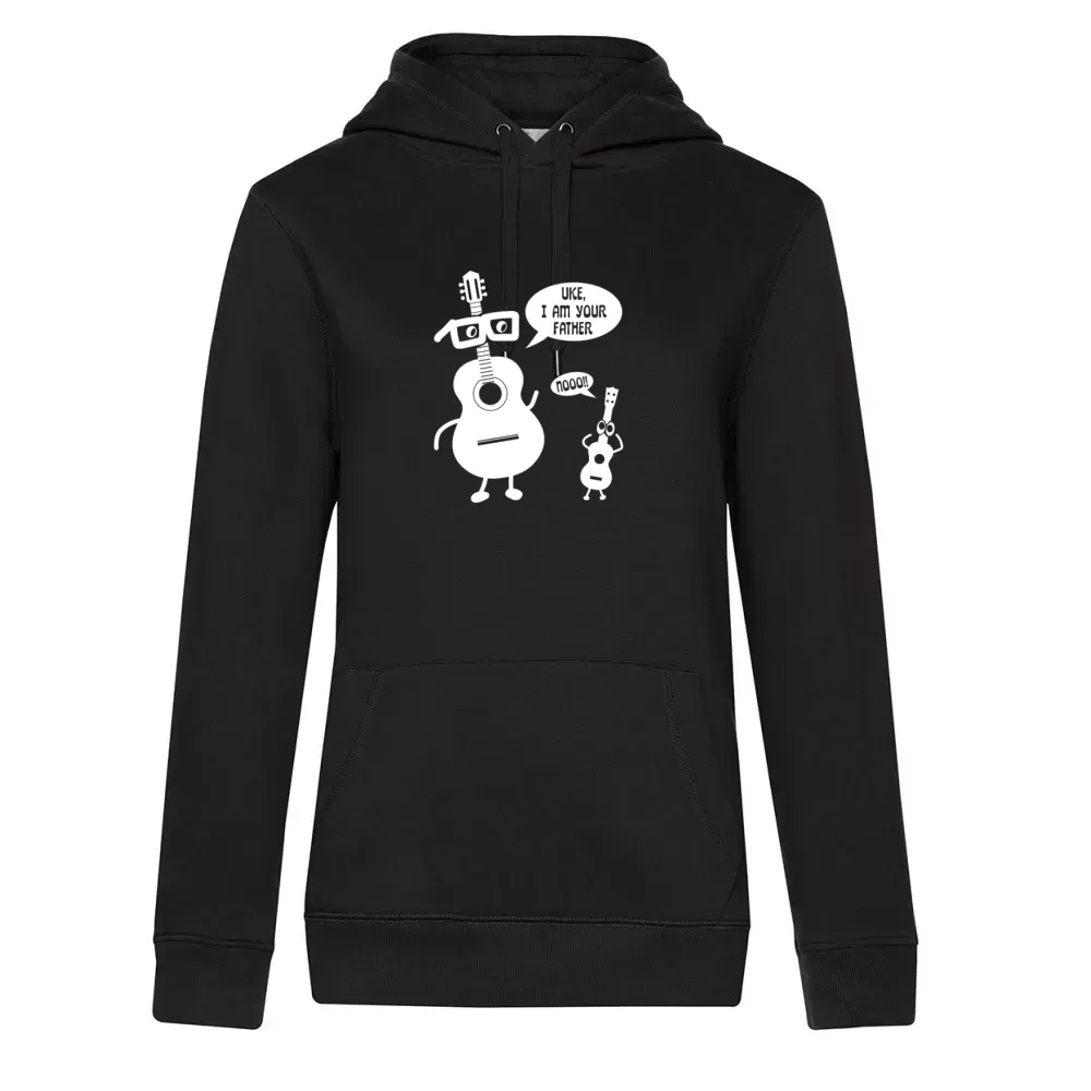 Suchen Sie nach dem perfekten Geschenk für Musiker oder Ukulele-Liebhaber? Unser Motiv I Am Your Father auf Frauen Hoodie ist die ideale Wahl. Diese humorvolle und einzigartige Gestaltung strahlt Charme und Kreativität aus und eignet sich hervorragend für alle, die Musik lieben und gerne mit einem Augenzwinkern durchs Leben gehen.