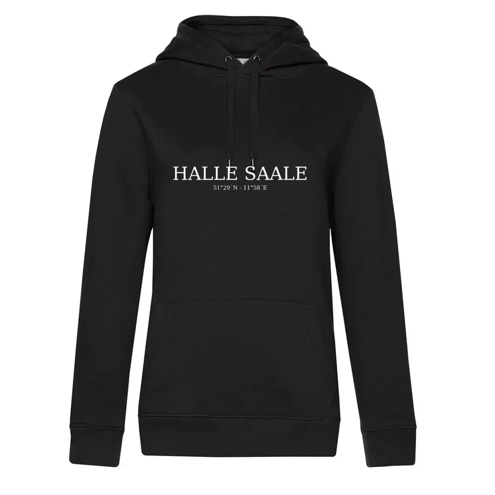 Verleihe deinem Outfit eine persönliche Note und setze ein Zeichen für deine Wurzeln. Mit den Koordinaten von Halle Saale auf deinem Frauen Hoodie trägst du ein Stück Heimat immer bei dir. Ideal für den Alltag oder als besonderes Geschenk für Freunde und Familie!