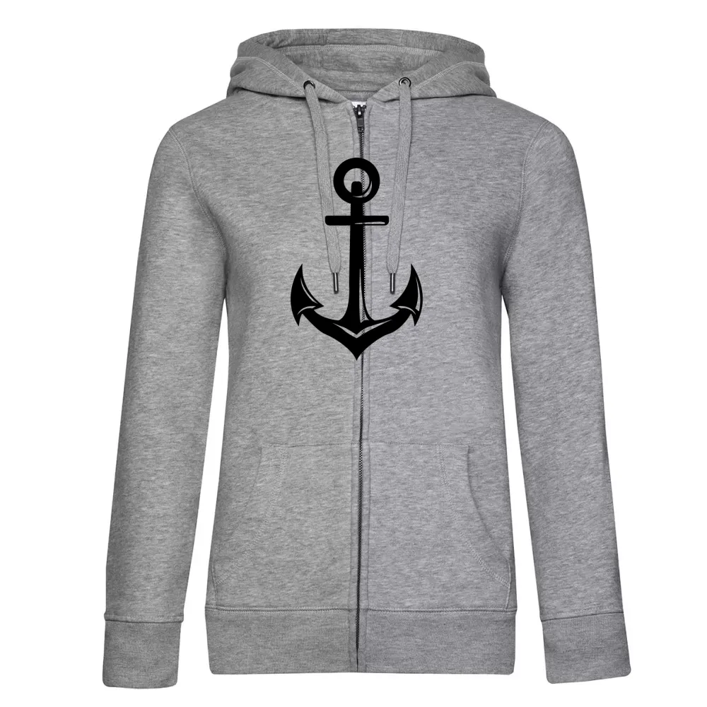 Unser Kapuzenjacke Frauen Hoodie aus hochwertigem 80 % einlaufvorbehandelte, ringgesponnene, Baumwolle, gekämmt - 20 % Recyceltes Polyester bietet nicht nur einen ansprechenden Look, sondern auch einen unvergleichlichen Tragekomfort. Die stilvolle Darstellung des Ankers macht das Kleidungsstück zu einem absoluten Highlight und lässt sich vielseitig kombinieren. Egal, ob bei einem entspannten Tag am Strand, beim Treffen mit Freunden oder einfach nur im Alltag – mit diesem Motiv setzen Sie ein Zeichen für Ihren Lebensstil.