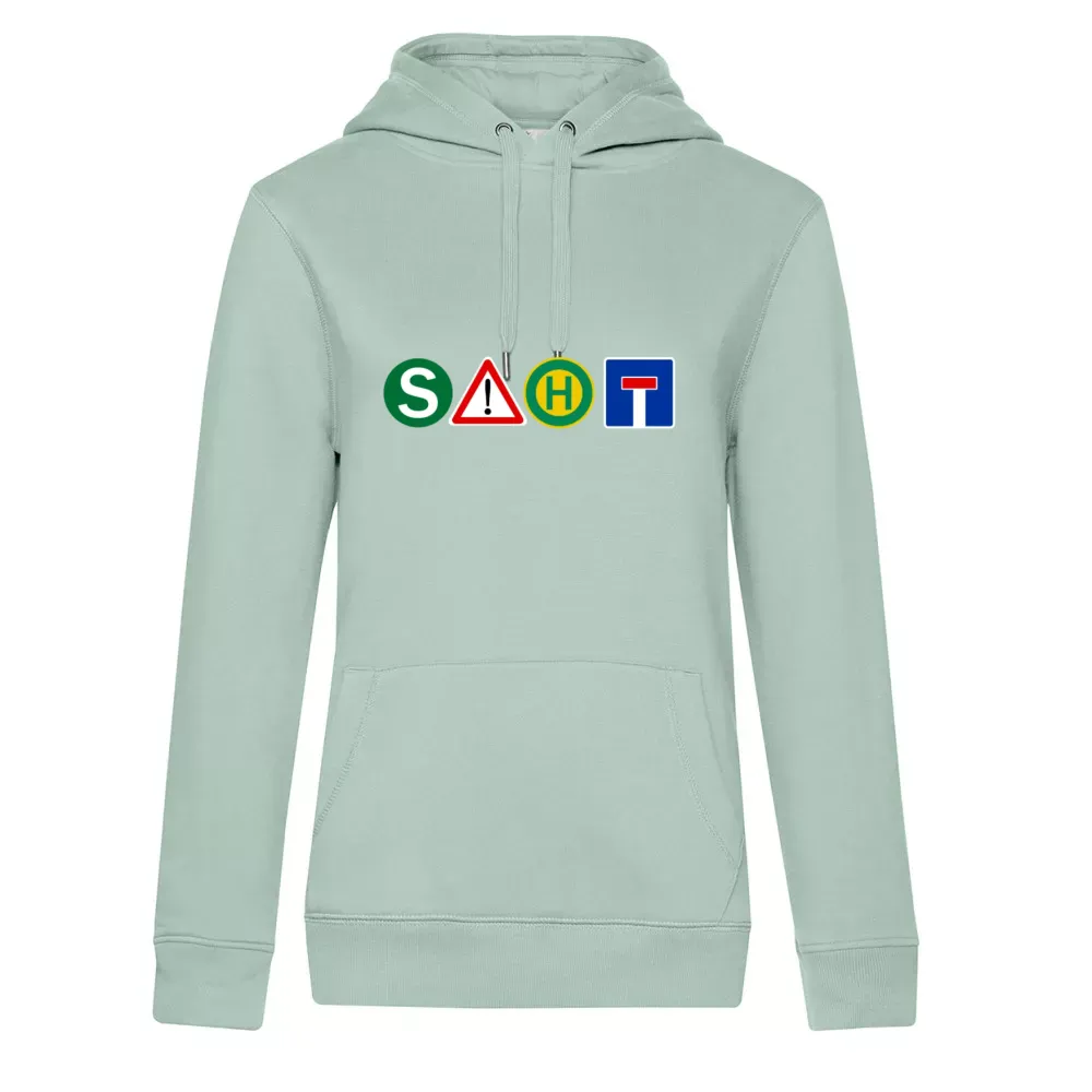 Zeige deinen Humor und deine Individualität mit unserem einzigartigen Shit Verkehrsschilder Motiv auf Frauen Hoodie. Dieses Design kombiniert kräftige Farben und witzige Illustrationen, die sofort ins Auge fallen und für Lacher sorgen. Egal, ob du es beim Freizeitlook oder für besondere Anlässe trägst, dieses T-Shirt, Hoodie oder Capi ist ein echter Hingucker.