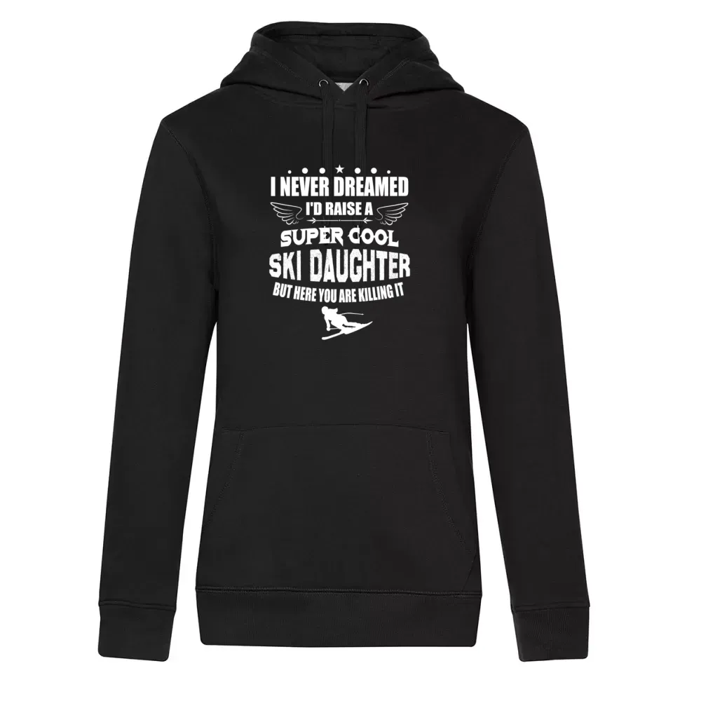 Zeige deine Leidenschaft für das Skifahren und teile deinen Stolz mit der Welt – egal wo du bist. Wähle unser Frauen Hoodie mit dem einzigartigen Stolz auf Tochter-Motiv und setze ein Zeichen für die Kombination aus sportlichem Ehrgeiz und familiärem Stolz. Perfect für jeden Skifahrer im Herzen!