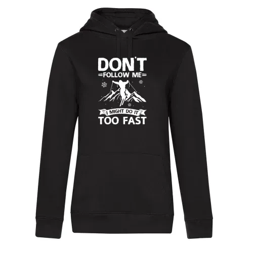 Bestelle hier dein Ski Skifahrer Skifahren Nicht Folgen Zu Schnell Hoodie aus 80 % einlaufvorbehandelte, ringgesponnene, Baumwolle, gekämmt - 20 % Recyceltes Polyester und gestallte es individuell nach deinen Vorstellungen. Kombiniere dein Ski Skifahrer Skifahren Nicht Folgen Zu Schnell Hoodie mit dem dazu passenden T-Shirt sowie Capi für ein rundum stimmiges Outfit.