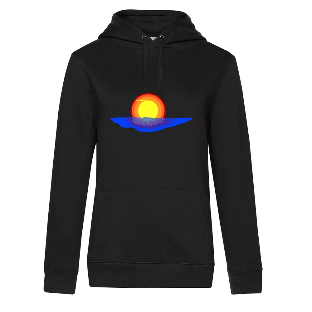 Erleben Sie, wie die warmen Farben des Sonnenuntergangs positive Energie und ein Gefühl von Ruhe ausstrahlen. Wählen Sie unsere hochwertige Frauen Hoodie und lassen Sie sich von der einzigartigen Atmosphäre des Sonnenuntergangs im Meer inspirieren. Ideal als Geschenk oder für Ihre eigene Kollektion. Verleihen Sie Ihrem Stil mit diesem zeitlosen Motiv einen besonderen Akzent, der nie aus der Mode kommt.