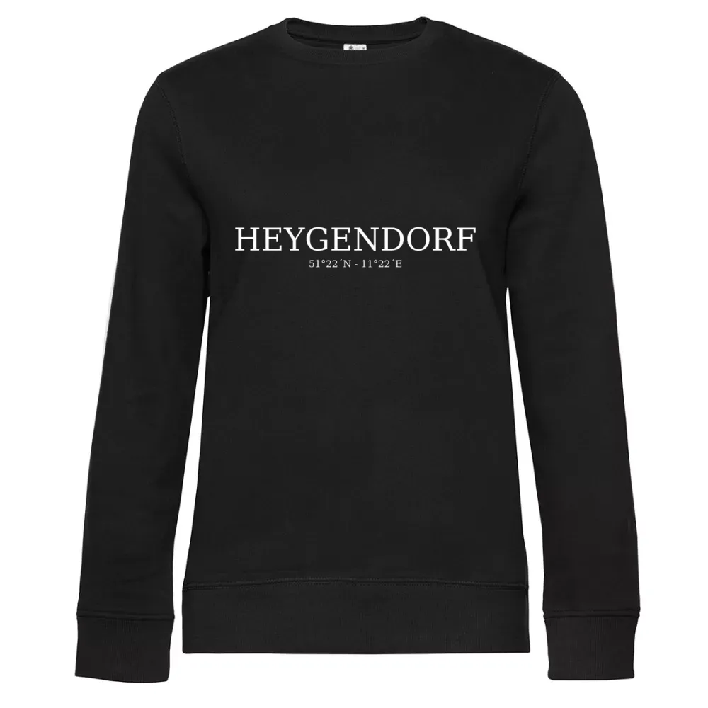 Das Frauen Sweat mit dem einzigartigen Heygendorf-Koordinaten-Motiv ist nicht nur ein modisches Statement, sondern auch ein echtes Stück Heimatliebe. Heygendorf, eingebettet in die malerische Natur, bietet eine perfekte Kombination aus ländlicher Idylle und urbanem Flair. Die Lage im Herzen Deutschlands macht diesen Ort zu einem idealen Ausgangspunkt für ausgedehnte Spaziergänge und Erkundungstouren.