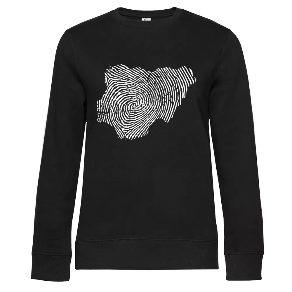 Mit dem Fingerabdruck-Motiv zeigst du deine Verbundenheit zu Nigeria und feierst die Vielfalt, die uns verbindet. Egal, ob du das Frauen Sweat für dich selbst oder als Geschenk für einen besonderen Menschen auswählst, du machst eine stilvolle und bedeutungsvolle Wahl.