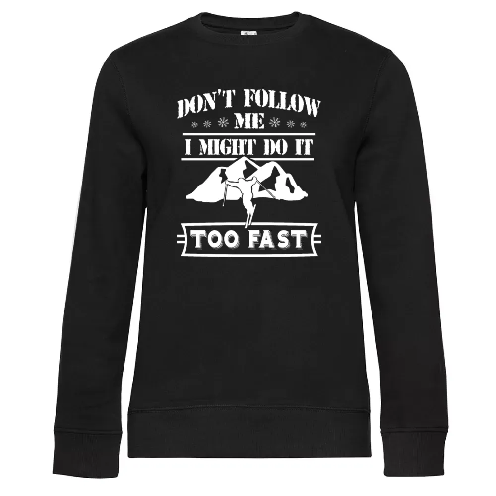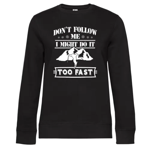Skifahren ist nicht nur ein Sport, sondern eine Leidenschaft, die Freiheit und Abenteuer in den verschneiten Bergen vereint. Das Motiv Nicht Folgen. Ich Fahre Zu auf diesem Frauen Sweat fängt genau dieses Gefühl ein und richtet sich an alle leidenschaftlichen Skifahrer, die ihren Individualismus und ihre Begeisterung für den Wintersport zum Ausdruck bringen möchten.