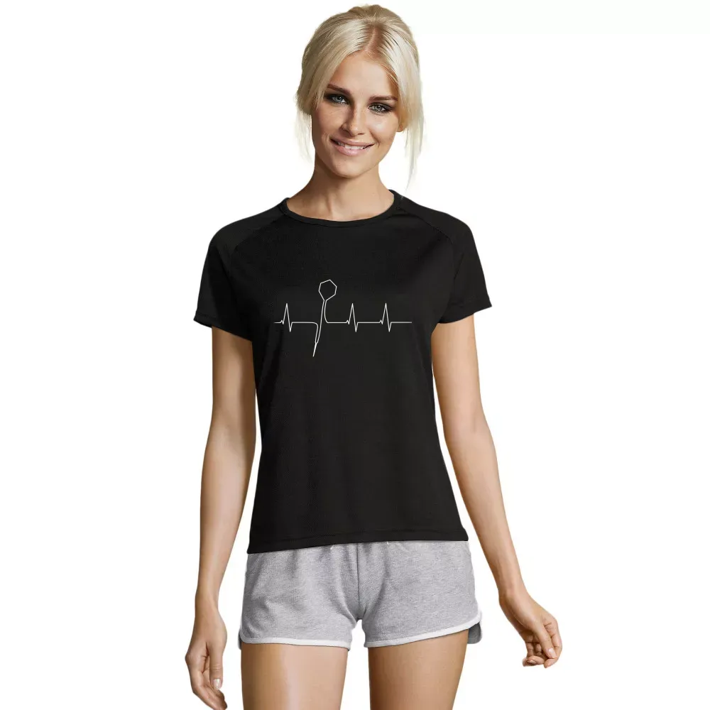 Zeige deine Leidenschaft für das Dartsport mit unserem einzigartigen Sport Frauen T-Shirt im aufregenden Design eines Dart Herzschlags. Dieses Motiv kombiniert die Faszination des Darts mit einem pulsierenden Herzschlag, der die Verbundenheit zu diesem Sport auf kreative Weise zum Ausdruck bringt. Perfekt für Dart-Spieler und Fans, die ihren Stolz mit einem modischen Statement unterstreichen möchten.