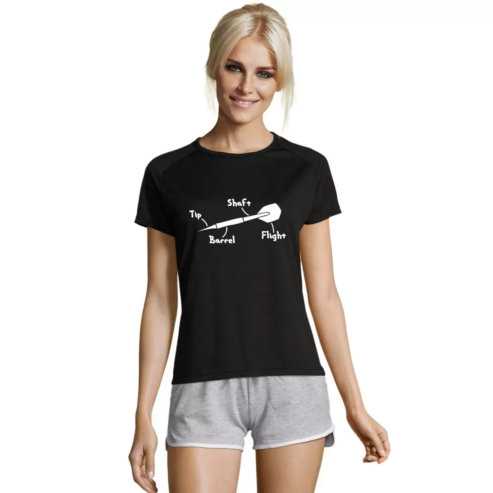 Unser Sport Frauen T-Shirt aus hochwertigem 100 % Polyester bietet nicht nur angenehmen Tragekomfort, sondern auch Langlebigkeit. Ob beim Training, beim entspannten Abend mit Freunden oder einfach im Alltag, dieses Design zieht die Blicke auf sich und zeigt deine Begeisterung für das Dartspiel.