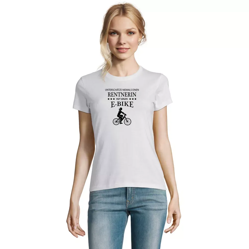 Das Fahrrad Ebike Rentnerin E-Bike Rente Bike Spruch Motive wird mittels