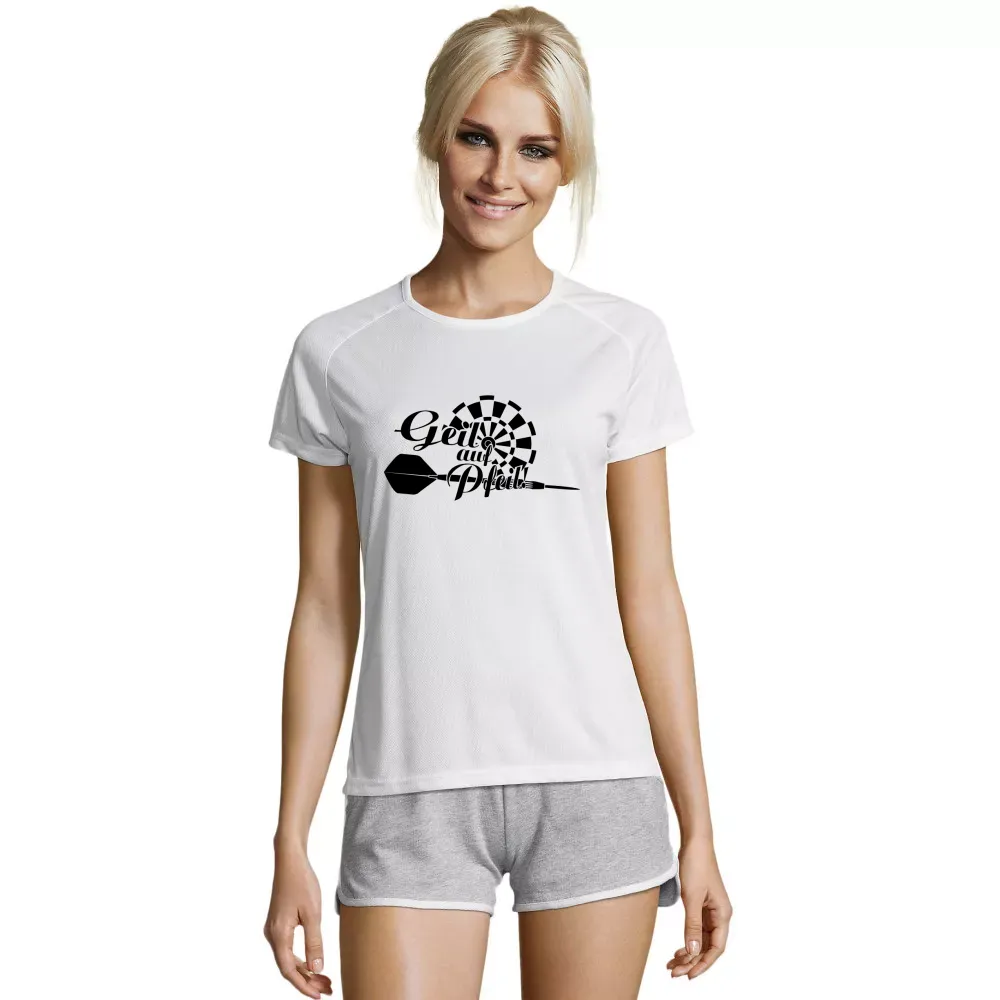 Bestelle jetzt dein Sport Frauen T-Shirt und zeige der Welt, dass du richtig auf Darts stehst. Lass das Spiel beginnen und hebe deinen Style auf das nächste Level mit unserem Geil auf Pfeil Motiv!