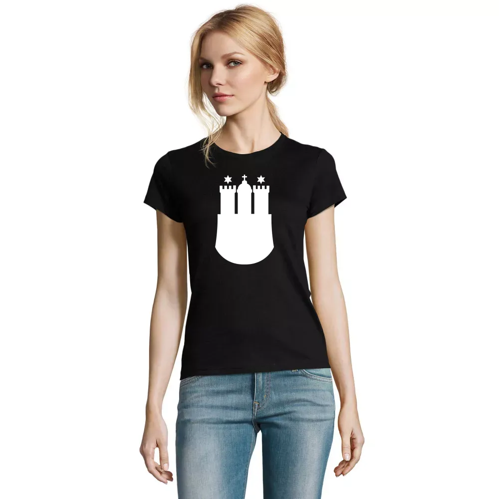 Das Motiv zeigt mit viel Liebe zum Detail das Wappen von Hamburg, das die Tradition und Geschichte der Stadt verkörpert. Tragen Sie dieses Frauen T-Shirt bei Ihren Freizeitaktivitäten oder entspannen Sie in der Stadt, während Sie Ihre Verbundenheit zu Hamburg zeigen.
