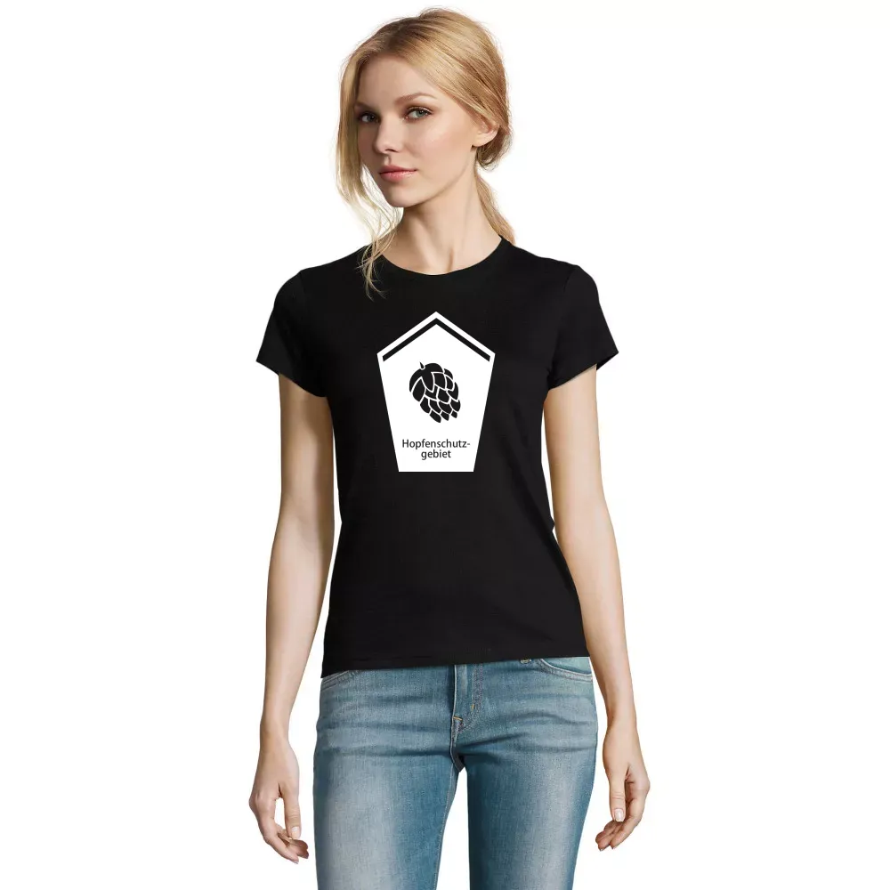 Das Motiv des Hopfenschutzgebietschilds auf einem Frauen T-Shirt ist perfekt für alle, die Natur und regionale Besonderheiten schätzen. Dieses einzigartige Design symbolisiert die Bedeutung des Schutzes unserer Hopfenfelder und Nachhaltigkeit in der Landwirtschaft.
