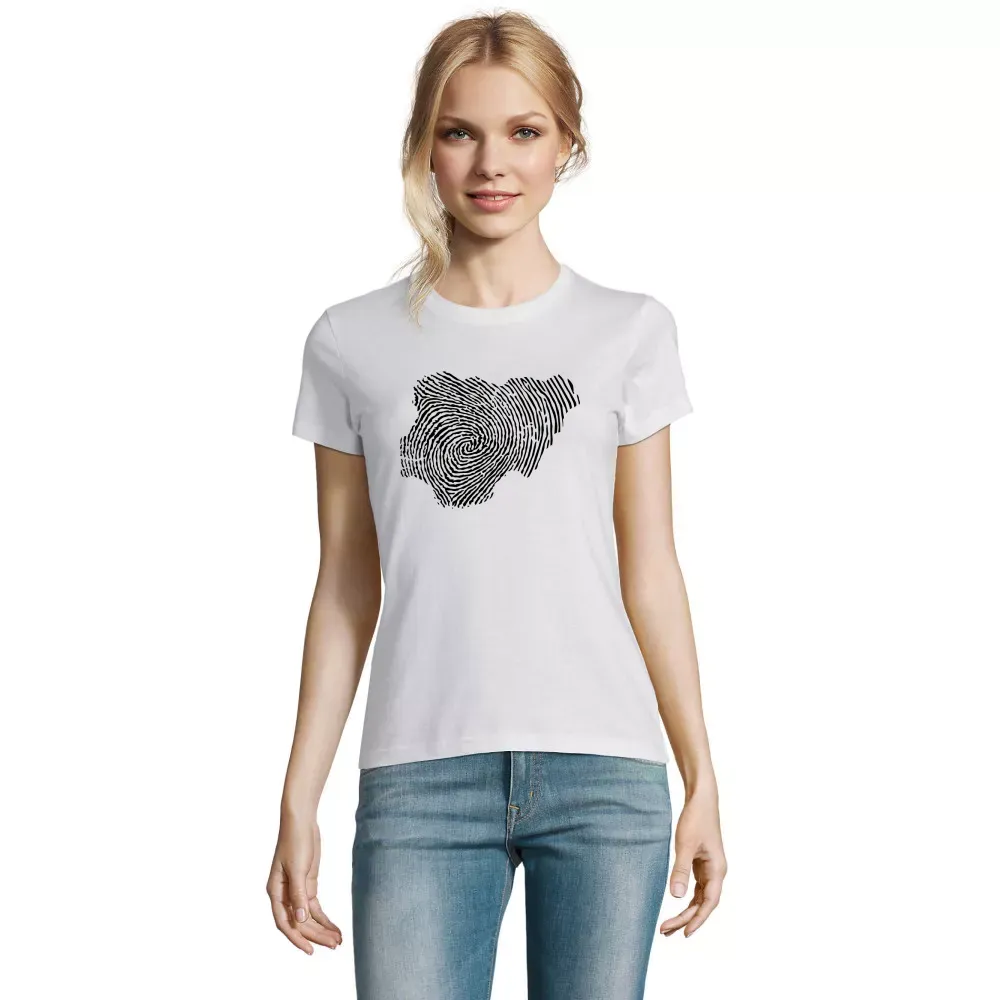 Mit dem Fingerabdruck-Motiv zeigst du deine Verbundenheit zu Nigeria und feierst die Vielfalt, die uns verbindet. Egal, ob du das Frauen T-Shirt für dich selbst oder als Geschenk für einen besonderen Menschen auswählst, du machst eine stilvolle und bedeutungsvolle Wahl.