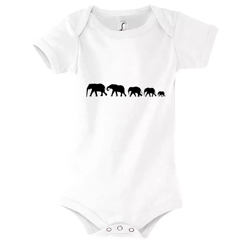 Warten Sie nicht länger! Fügen Sie das Strampler Kinder Body mit dem Elefantenfamilie-Motiv Ihrer Kollektion hinzu und lassen Sie sich von der positiven Ausstrahlung verzaubern.