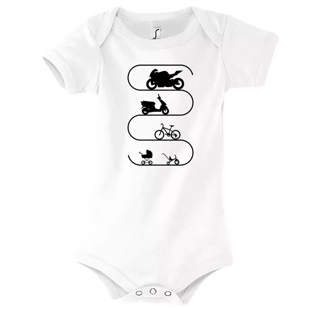 Die große Motorrad Evolution ist mehr als nur ein Motiv – sie verkörpert die Leidenschaft und das Lebensgefühl von Motorradfahrern und -liebhabern. Auf diesem Strampler Kinder Body wird das beeindruckende Design zum Blickfang, egal ob beim gemütlichen Beisammensein oder beim Ausflug auf die nächste Biker-Tour.