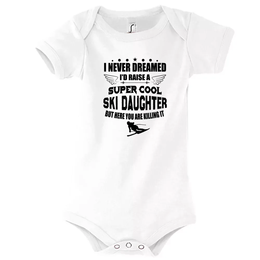 Zeige deine Leidenschaft für das Skifahren und teile deinen Stolz mit der Welt – egal wo du bist. Wähle unser Strampler Kinder Body mit dem einzigartigen Stolz auf Tochter-Motiv und setze ein Zeichen für die Kombination aus sportlichem Ehrgeiz und familiärem Stolz. Perfect für jeden Skifahrer im Herzen!