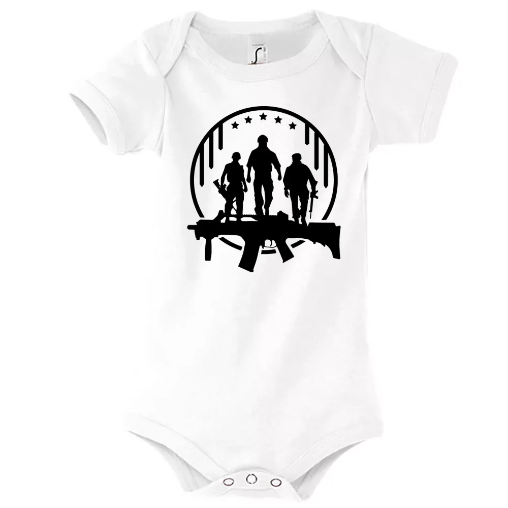 Bestelle hier dein Sturmgewehr Logo - Bundeswehr Soldat im Einsatz Body aus 100 % gekämmte Baumwolle Ringspun und gestallte es individuell nach deinen Vorstellungen. Kombiniere dein Sturmgewehr Logo - Bundeswehr Soldat im Einsatz Body mit dem dazu passenden T-Shirt sowie Capi für ein rundum stimmiges Outfit.