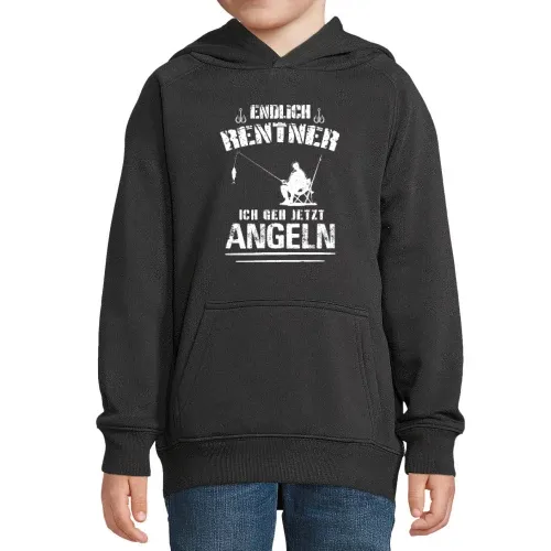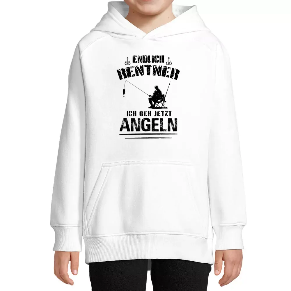 Gönnen Sie sich selbst oder einem Freund dieses besondere Kleidungsstück und feiern Sie die Freiheit des Rentnerlebens mit einem Spruch, der motiviert und zum Schmunzeln anregt. Genießen Sie die Zeit am Wasser und fühlen Sie sich dabei wohl – mit unserem Kinder Hoodie aus hochwertigem 80 % Bio-baumwolle - 20 % recyceltes Polyester. Machen Sie sich bereit für viele entspannte Stunden am Angelsee!