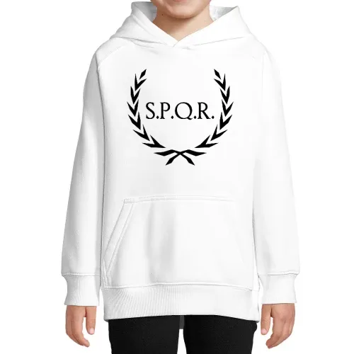 Das Motiv des Lorbeerkranzes, kombiniert mit dem klassischen SPQR-Design, ist eine zeitlose Hommage an die antike römische Kultur. Dieses eindrucksvolle Symbol steht für Sieg, Ehre und die Vielfalt der römischen Geschichte. Auf einem Kinder Hoodie wirkt der Lorbeerkranz besonders ansprechend und verleiht jedem Outfit einen Hauch von Geschichte und Stil.