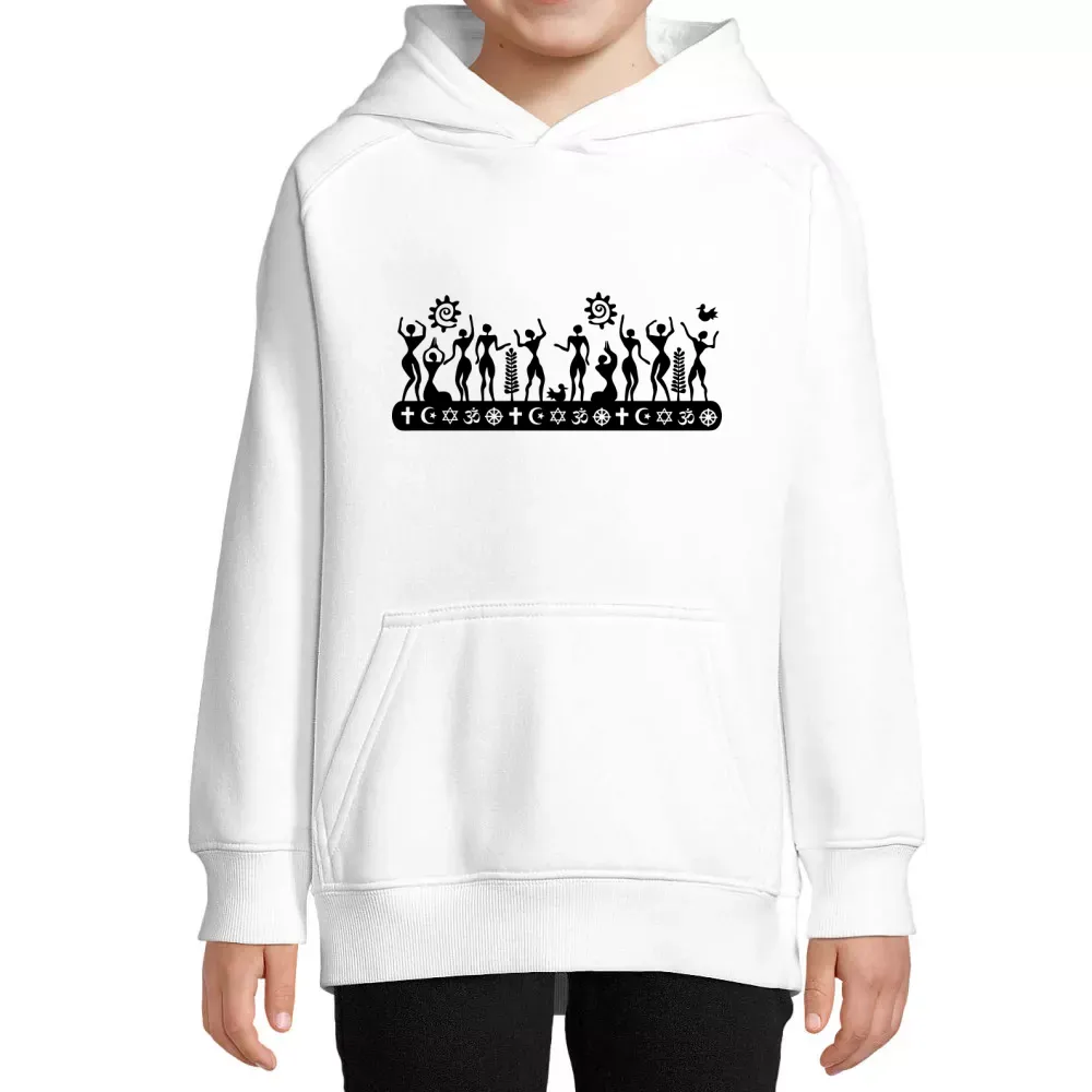 In einer Welt, die von Vielfalt und unterschiedlichen Glaubensrichtungen geprägt ist, wird das Motiv Menschen aller Religionen auf Kinder Hoodie zu einem kraftvollen Statement. Dieses Design feiert die Einheit und den Frieden, den der respektvolle Austausch zwischen Menschen verschiedener Kulturen und Überzeugungen bringen kann.