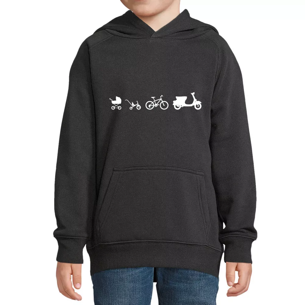 Bestelle hier dein Motorroller Evolution Hoodie aus 80 % Bio-baumwolle - 20 % recyceltes Polyester und gestallte es individuell nach deinen Vorstellungen. Kombiniere dein Motorroller Evolution Hoodie mit dem dazu passenden T-Shirt sowie Capi für ein rundum stimmiges Outfit.