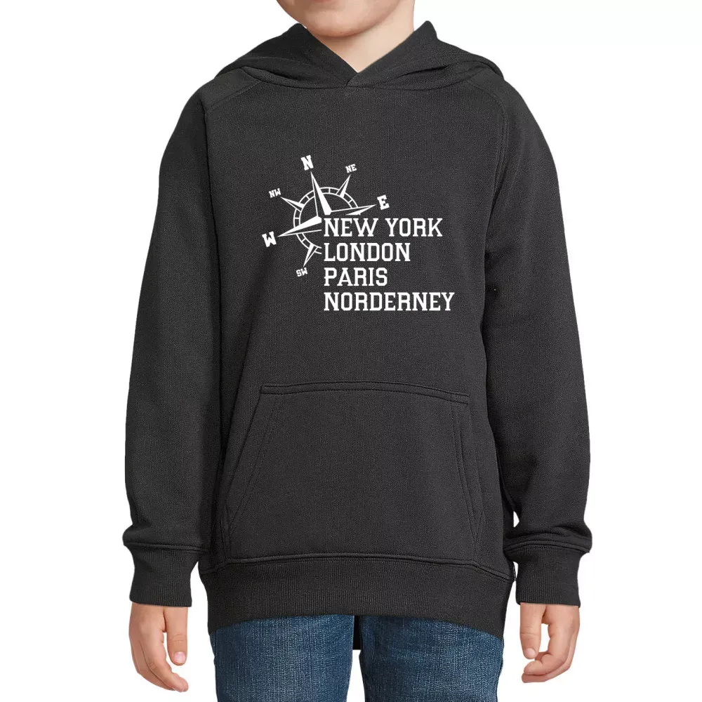 Unser Kinder Hoodie besteht aus hochwertigem 80 % Bio-baumwolle - 20 % recyceltes Polyester, das nicht nur angenehm auf der Haut liegt, sondern auch langlebig und pflegeleicht ist. Durch das einzigartige Design mit dem Motiv „Weltstadt Norderney“ wirst du zum echten Blickfang – sei es am Strand, beim Stadtbummel oder bei deinen Freizeitaktivitäten.