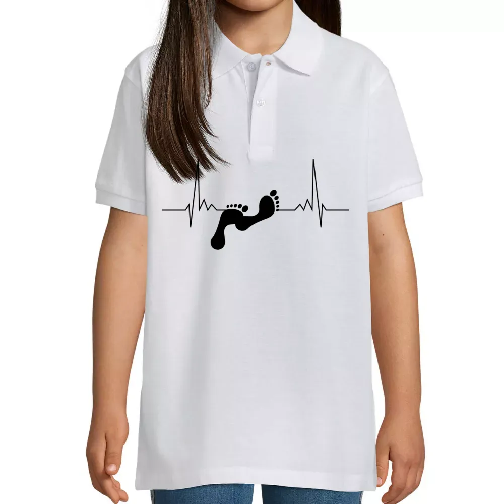 Das Motiv Barfuß Herzschlag auf Kinder Polo bringt frischen Wind in Ihre Garderobe und verkörpert eine tiefe Verbundenheit zur Natur und Freiheit. Der pulsierende Herzschlag symbolisiert das Leben in seiner reinsten Form und erinnert daran, das Leben in vollen Zügen zu genießen. Mit diesem einzigartigen Design heben Sie sich von der Masse ab und zeigen Ihren individuellen Stil.
