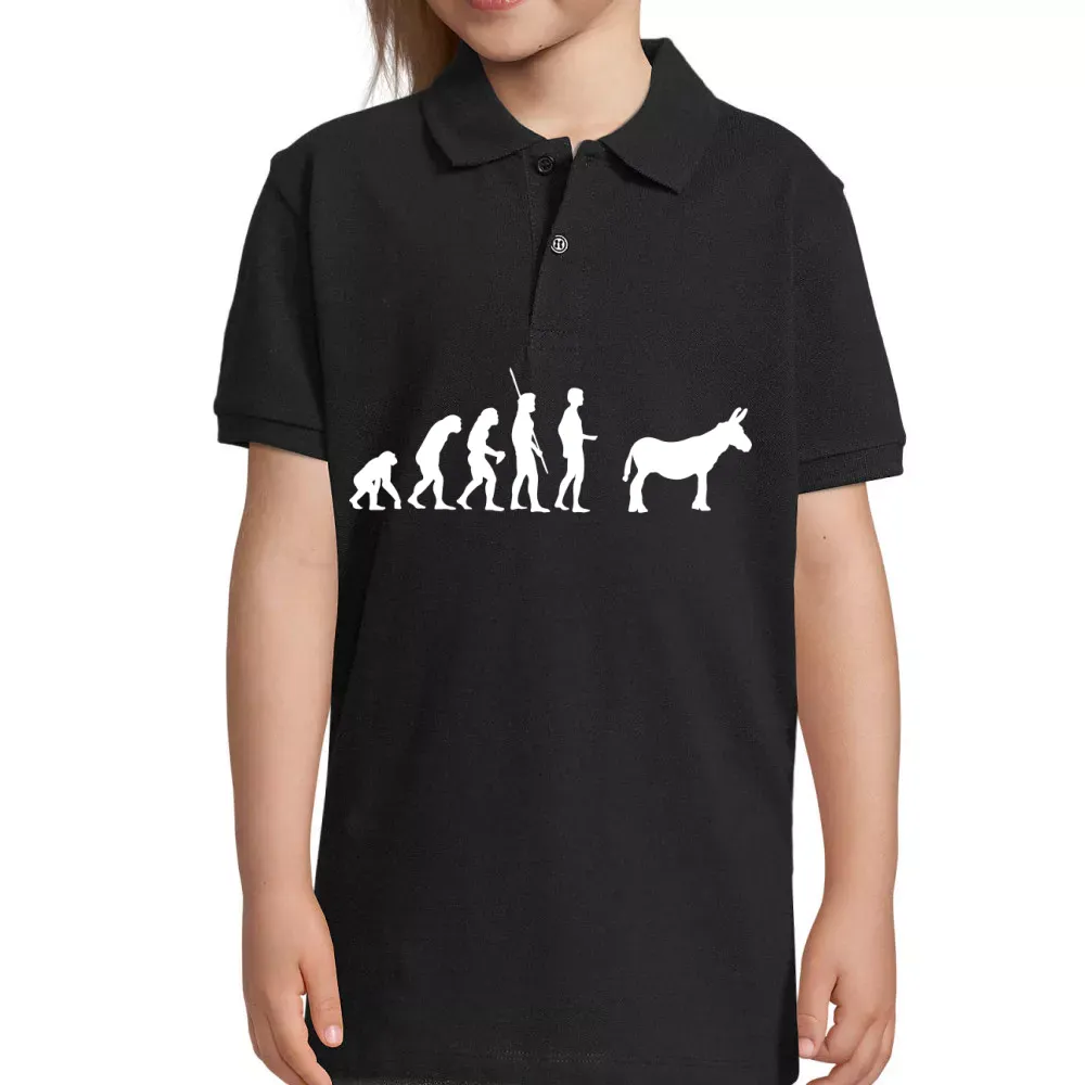 Hergestellt aus hochwertigem 100 % gekämmte Baumwolle, bietet das Kinder Polo nicht nur eine ansprechende Optik, sondern auch eine angenehme Haptik. Egal, ob beim Ausgehen oder bei entspannenden Stunden zu Hause – das Motiv Evolution Esel sorgt dafür, dass du immer gut aussiehst.