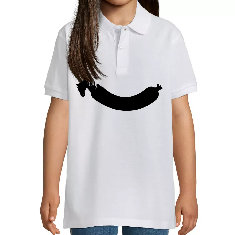 Schaffe jetzt deinen individuellen Look mit unserem „Pferdewurst“-Motiv auf Kinder Polo und setze ein Statement, das begeistert!
