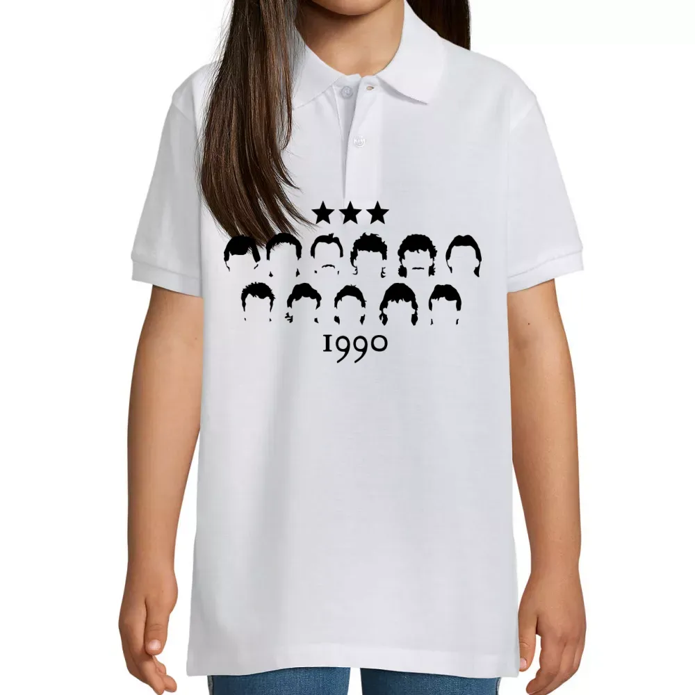 Feiere die unvergesslichen Momente der Weltmeisterschaft 1990 mit unserem einzigartigen Motiv auf einem Kinder Polo. Dieses Design fängt den Geist und die Leidenschaft des Turniers ein und ist perfekt für jeden Fan, der seine Erinnerungen an diese epische Zeit lebendig halten möchte.