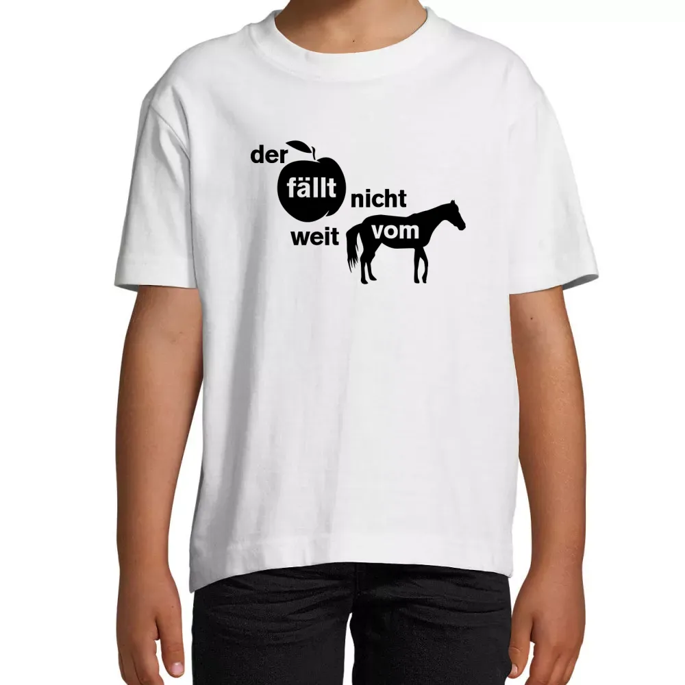 Mit diesem Motiv auf deinem Kinder T-Shirt zeigst du nicht nur deinen Sinn für Humor, sondern auch eine Portion Lebensfreude. Lass dich von der positiven Energie anstecken und bereichere deine Garderobe mit diesem einzigartigen Teil. Ob für dich selbst oder als originelles Geschenk – der Spruch „Der Apfel fällt nicht weit vom Pferd“ wird bestimmt für Schmunzeln sorgen und Gespräche anregen.