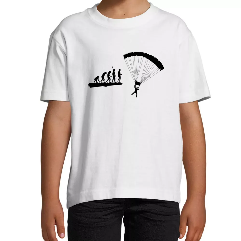 Mit seinem modernen Look ist das Evolution Fallschirmspringer-Motiv ideal für Sportliebhaber und alle, die ein Statement setzen möchten. Mit diesem Kinder T-Shirt bekundest du deine Leidenschaft für den Fallschirmsport und ziehst überall die Blicke auf dich. Zeige deine Begeisterung und deinen Mut in diesem stilvollen und funktionalen Kleidungsstück.