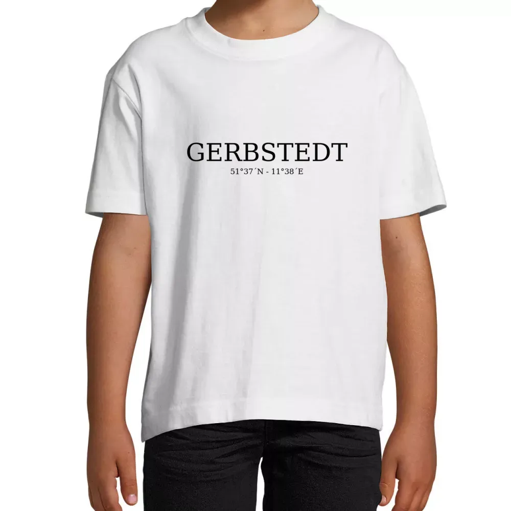 Willkommen in Gerbstedt, einem charmanten Ort im Herzen von Sachsen-Anhalt! Unser Kinder T-Shirt mit den prägnanten Koordinaten von Gerbstedt ist nicht nur ein modisches Statement, sondern auch eine Hommage an diese malerische Stadt. Gerbstedt liegt strategisch günstig zwischen Halle und Magdeburg, umgeben von der idyllischen Landschaft des Mansfelder Landes.