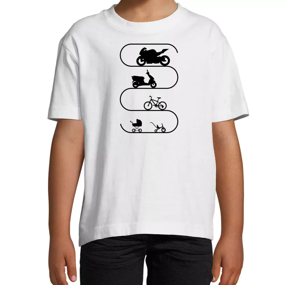 Die große Motorrad Evolution ist mehr als nur ein Motiv – sie verkörpert die Leidenschaft und das Lebensgefühl von Motorradfahrern und -liebhabern. Auf diesem Kinder T-Shirt wird das beeindruckende Design zum Blickfang, egal ob beim gemütlichen Beisammensein oder beim Ausflug auf die nächste Biker-Tour.