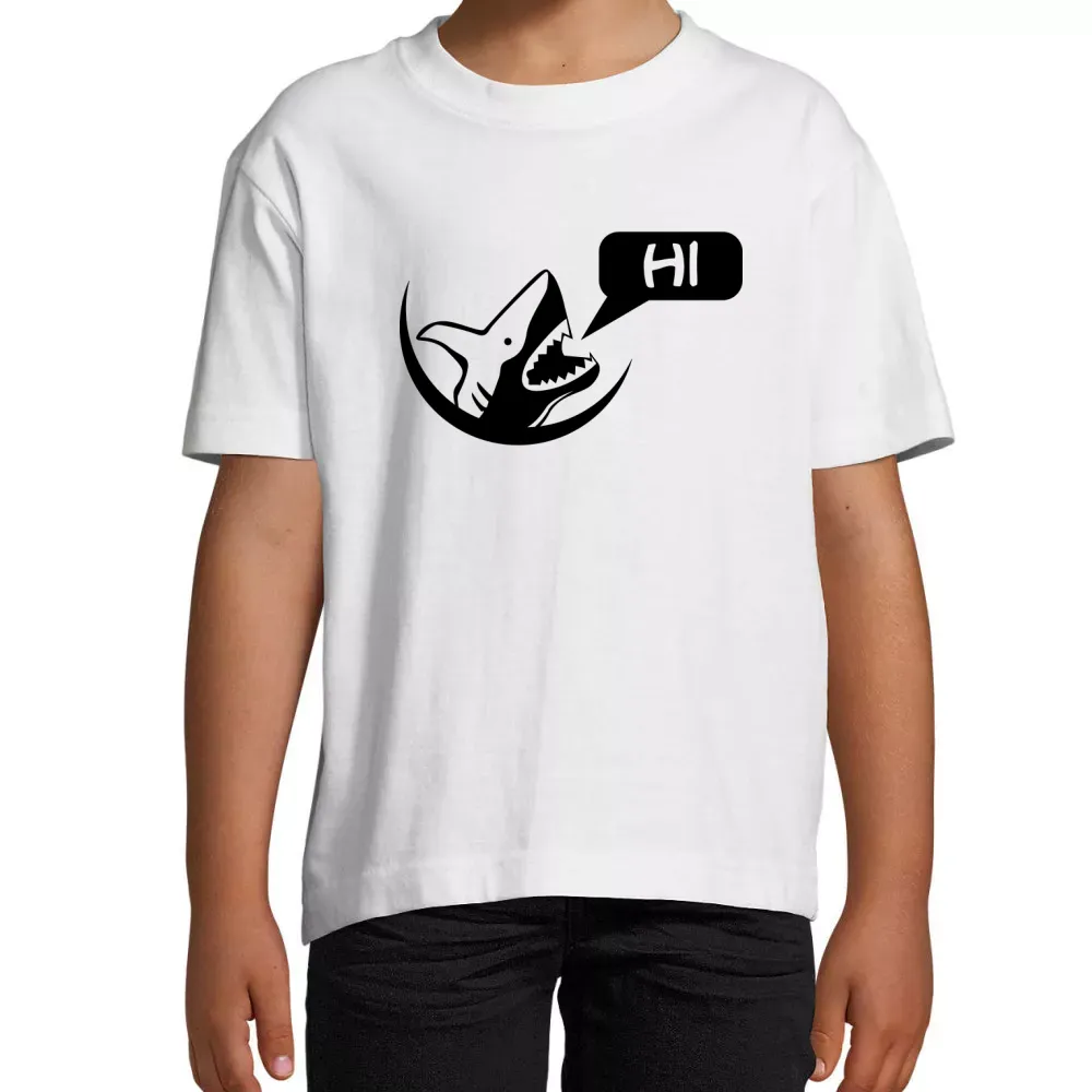 Das Hi Hai Motiv auf einem Kinder T-Shirt ist der perfekte Begleiter für all diejenigen, die ihren individuellen Style unterstreichen möchten. Das auffällige Design bringt frischen Wind in jede Garderobe und sorgt für einen lässigen Look, der sowohl im Alltag als auch in der Freizeit hervorragend zur Geltung kommt.