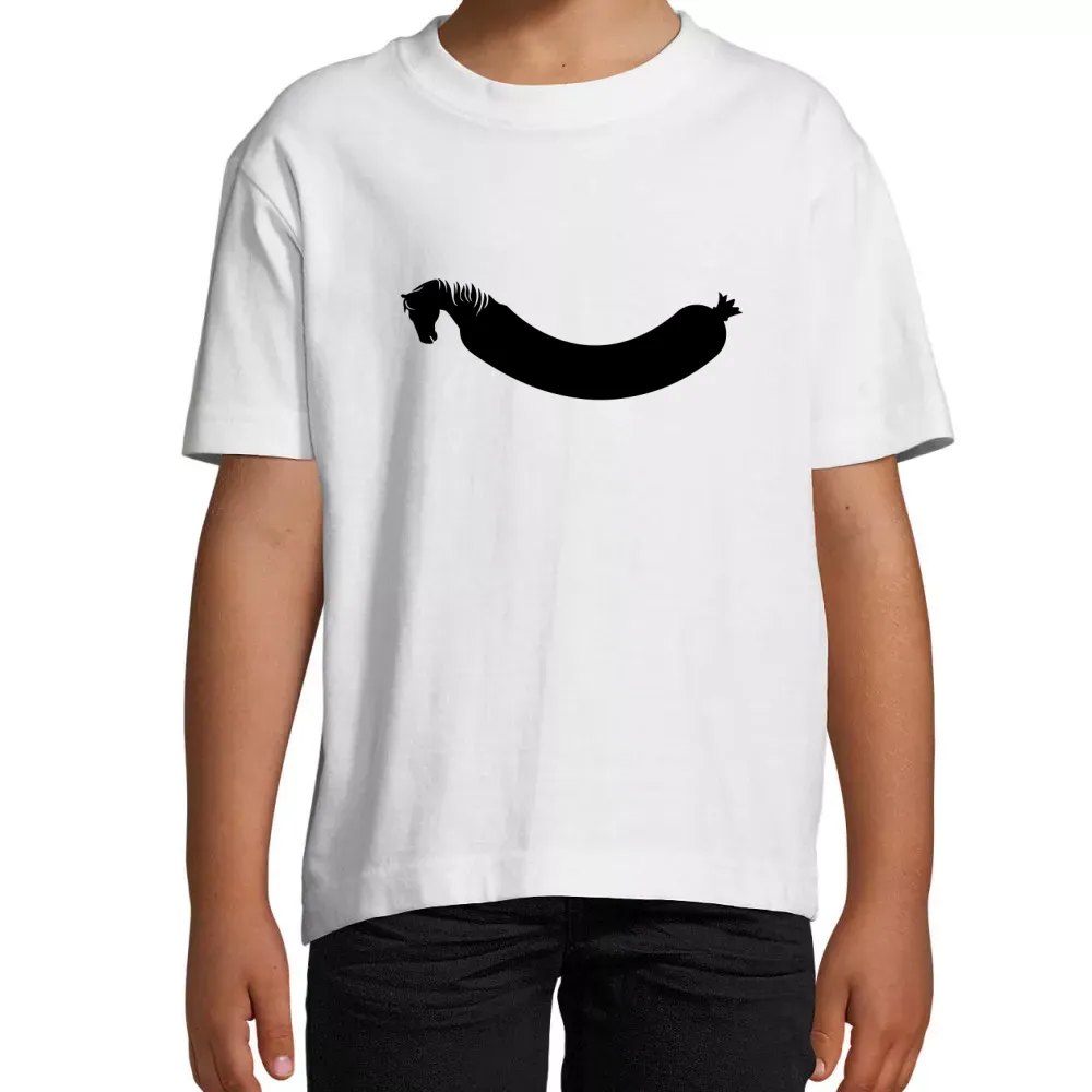 Schaffe jetzt deinen individuellen Look mit unserem „Pferdewurst“-Motiv auf Kinder T-Shirt und setze ein Statement, das begeistert!