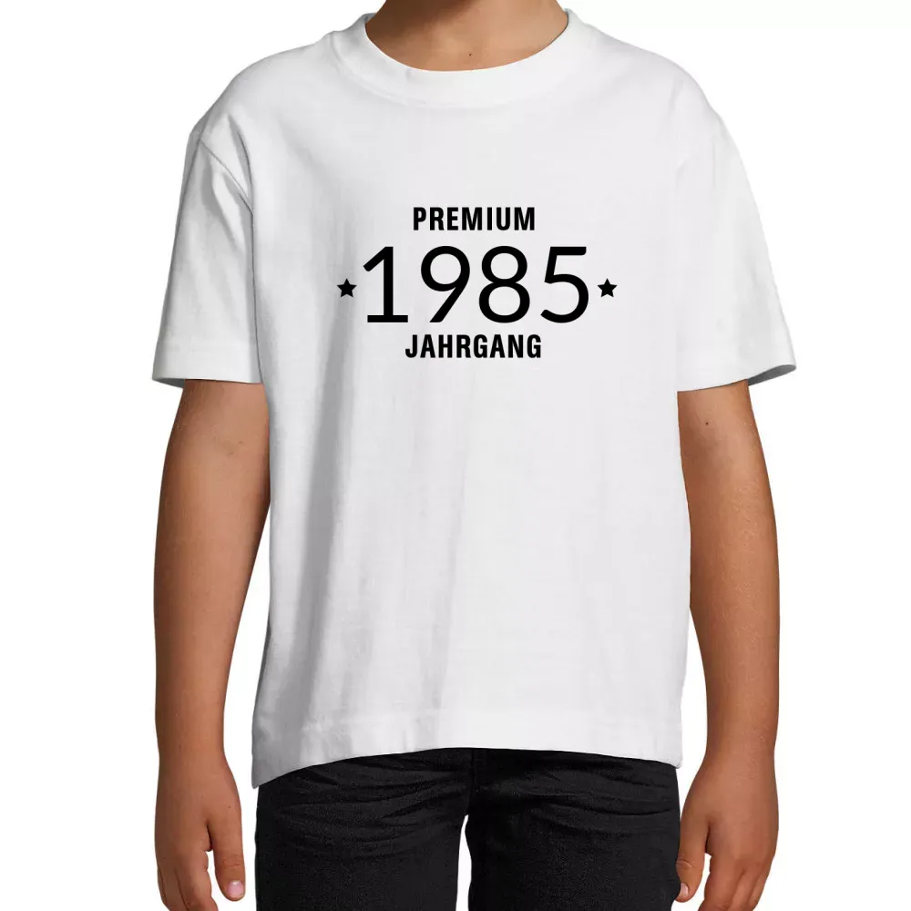 Ein einzigartiges Jahrgangsdesign für alle, die 1985 geboren wurden oder mit diesem Jahrgang besonders verbunden sind. Mit der stilvollen Motivgrafik auf einem Kinder T-Shirt, ist dieses Teil nicht nur ein Modehighlight, sondern auch ein persönliches Statement. Die Kombination aus Vintage-Charme und modernem Look macht dieses Kinder T-Shirt zum idealen Begleiter für jeden Anlass.