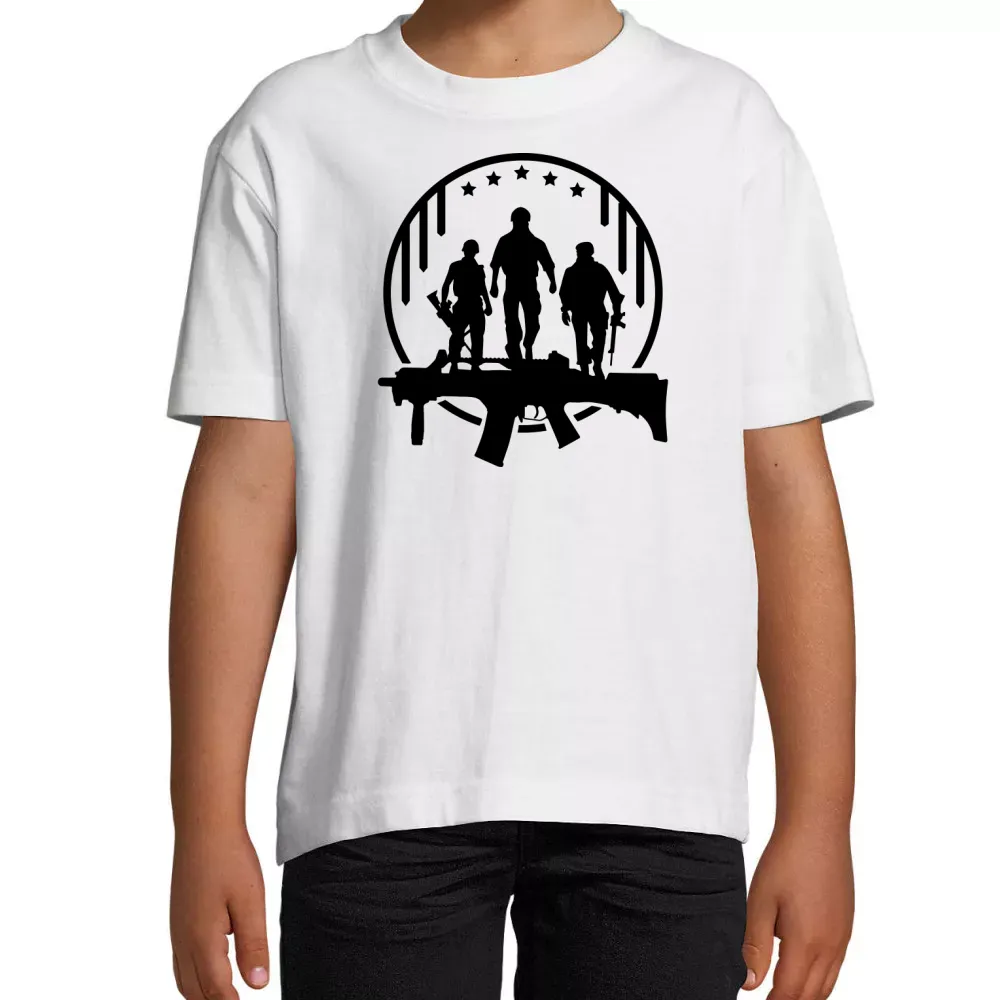Das stilvolle Design zeigt das emblematische Sturmgewehr, das für Tapferkeit und Einsatzbereitschaft steht. Egal, ob du es im Training, in der Freizeit oder als modisches Statement trägst, dieses Motiv wird immer ein Blickfang sein. Die Kombination aus Kinder T-Shirt und dem hochwertigen 100 % halbgekämmte Baumwolle Ringspun sorgt für optimalen Tragekomfort und Langlebigkeit, sodass du lange Freude an deinem Kleidungsstück hast.