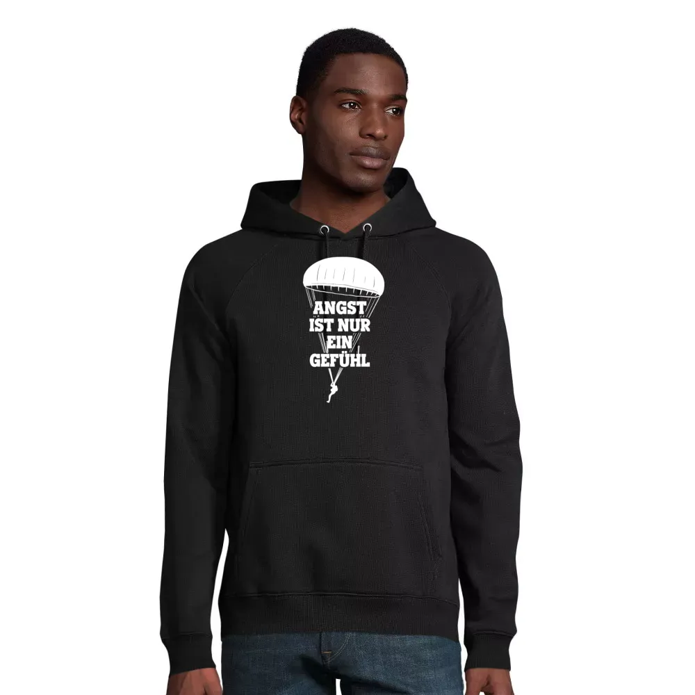 Bestelle hier dein Angst ist nur ein Gefühl - Fallschirmjäger Spruch Hoodie aus 80 % Bio-baumwolle - 20 % recyceltes Polyester und gestallte es individuell nach deinen Vorstellungen. Kombiniere dein Angst ist nur ein Gefühl - Fallschirmjäger Spruch Hoodie mit dem dazu passenden T-Shirt sowie Capi für ein rundum stimmiges Outfit.