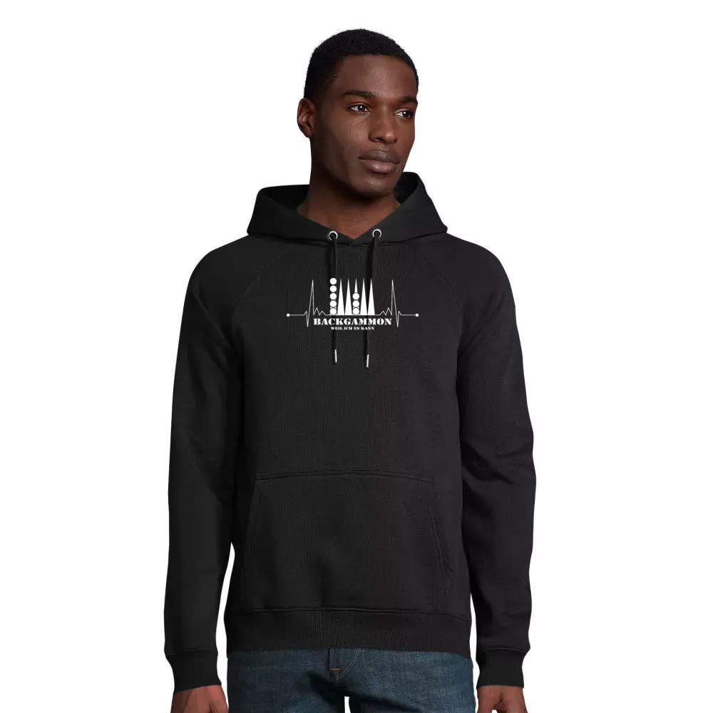 Unser nachhaltiger Männer Hoodie aus hochwertigem 80 % Bio-baumwolle - 20 % recyceltes Polyester bietet nicht nur einen lässigen Look, sondern auch Komfort und Langlebigkeit. Die optimale Passform und der angenehme Stoff machen es zum idealen Begleiter – ob beim Spielen mit Freunden, bei Turnieren oder in der Freizeit. Lassen Sie Ihren individuellen Stil sprechen und zeigen Sie Ihre Leidenschaft für Backgammon.