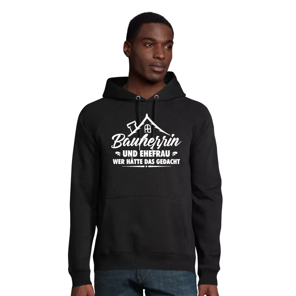 Bestelle hier dein Bauherrin und Ehefrau Wer Hätte Das Gedacht Geschenk Hoodie aus 80 % Bio-baumwolle - 20 % recyceltes Polyester und gestallte es individuell nach deinen Vorstellungen. Kombiniere dein Bauherrin und Ehefrau Wer Hätte Das Gedacht Geschenk Hoodie mit dem dazu passenden T-Shirt sowie Capi für ein rundum stimmiges Outfit.
