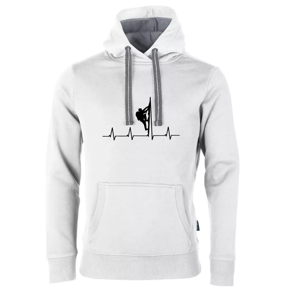 Wählen Sie kontrastkapuzen Männer Hoodie mit dem Bergsteigerherzschlag-Motiv und zeigen Sie Ihre Leidenschaft für die Berge. Ideal als Geschenk für Freunde oder für sich selbst, ist dieses T-Shirt, Hoodie oder Capi eine großartige Möglichkeit, Ihre Outdoor-Leidenschaft stilvoll auszudrücken.