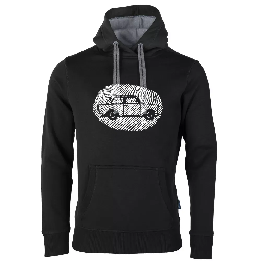 Bestelle hier dein Daumenabdruck Trabi Hoodie aus 80 % Baumwolle 20 % Polyester und gestallte es individuell nach deinen Vorstellungen. Kombiniere dein Daumenabdruck Trabi Hoodie mit dem dazu passenden T-Shirt sowie Capi für ein rundum stimmiges Outfit.