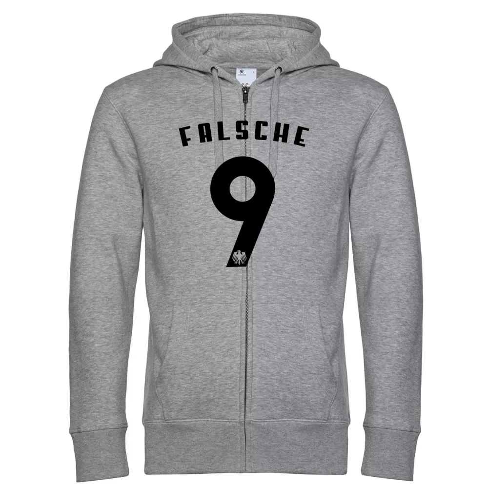 Bestelle hier dein Deutschland falsche Neun 9 Rückennummer Hoodie aus 80 % einlaufvorbehandelte, ringgesponnene, Baumwolle, gekämmt - 20 % Recyceltes Polyester und gestallte es individuell nach deinen Vorstellungen. Kombiniere dein Deutschland falsche Neun 9 Rückennummer Hoodie mit dem dazu passenden T-Shirt sowie Capi für ein rundum stimmiges Outfit.