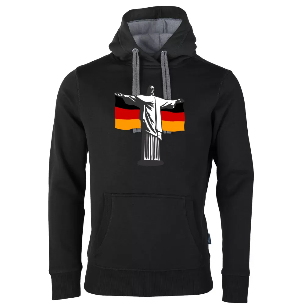 Erleben Sie die perfekte Verschmelzung von Glauben, Kultur und Stil mit unserem kontrastkapuzen Männer Hoodie, das das Motiv Deutschland Jesus in Rio eindrucksvoll zur Geltung bringt. Zeigen Sie Ihre Individualität und tragen Sie Ihre Überzeugungen mit Stolz.